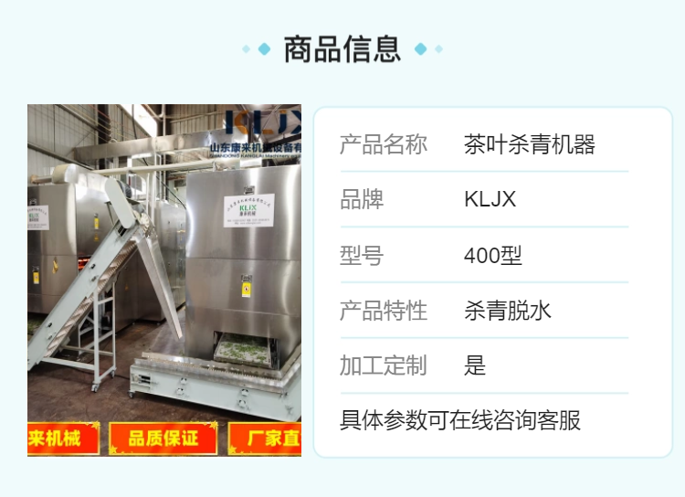 随着茶叶行业对品质和效率要求不断提高,传统手工杀青无法满足规模化、高标准生产的需求。山东康来机械设备有限公司推出的隧道式不锈钢脱水处理智能变频茶叶杀青机,集成光波杀青技术和智能控制系统,代表了现代茶叶加工先进设备的方向。